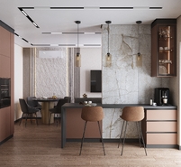 Визуализация кухни - гостиной по дизайн-проекту